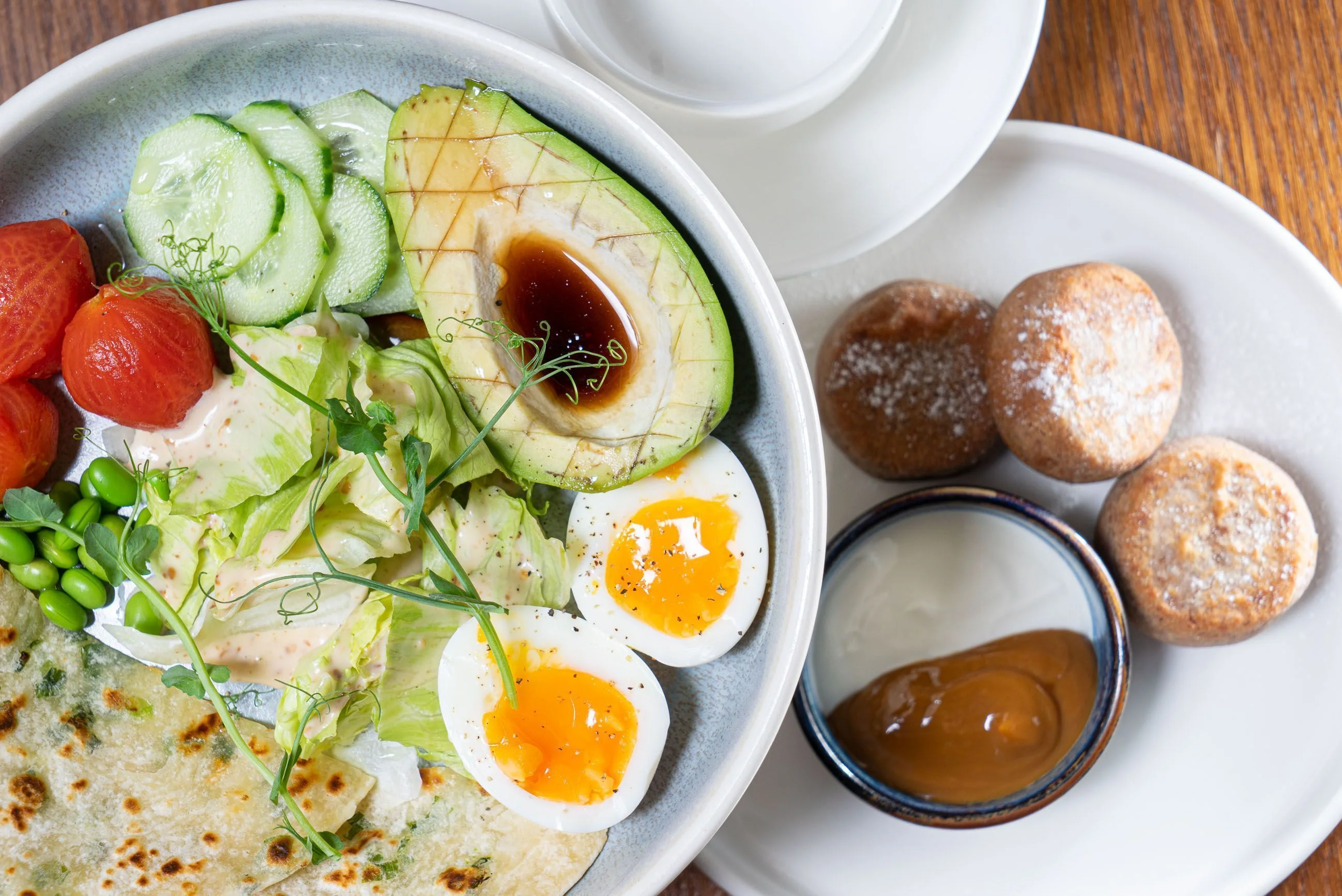 И всё сбылось — на завтрак в Picasso приходят специально, и тут есть что выбрать: например, «Бреакфест боул» — бланшированные томаты черри, отварное яйцо с жидким желтком, авокадо, свежие овощи, айсберг, ореховый соус и луковые лепешки, можно попробовать сырники из топлёного творога, шакшуку или «Пышный омлет Пуляр», который подаётся с помидорками черри.
