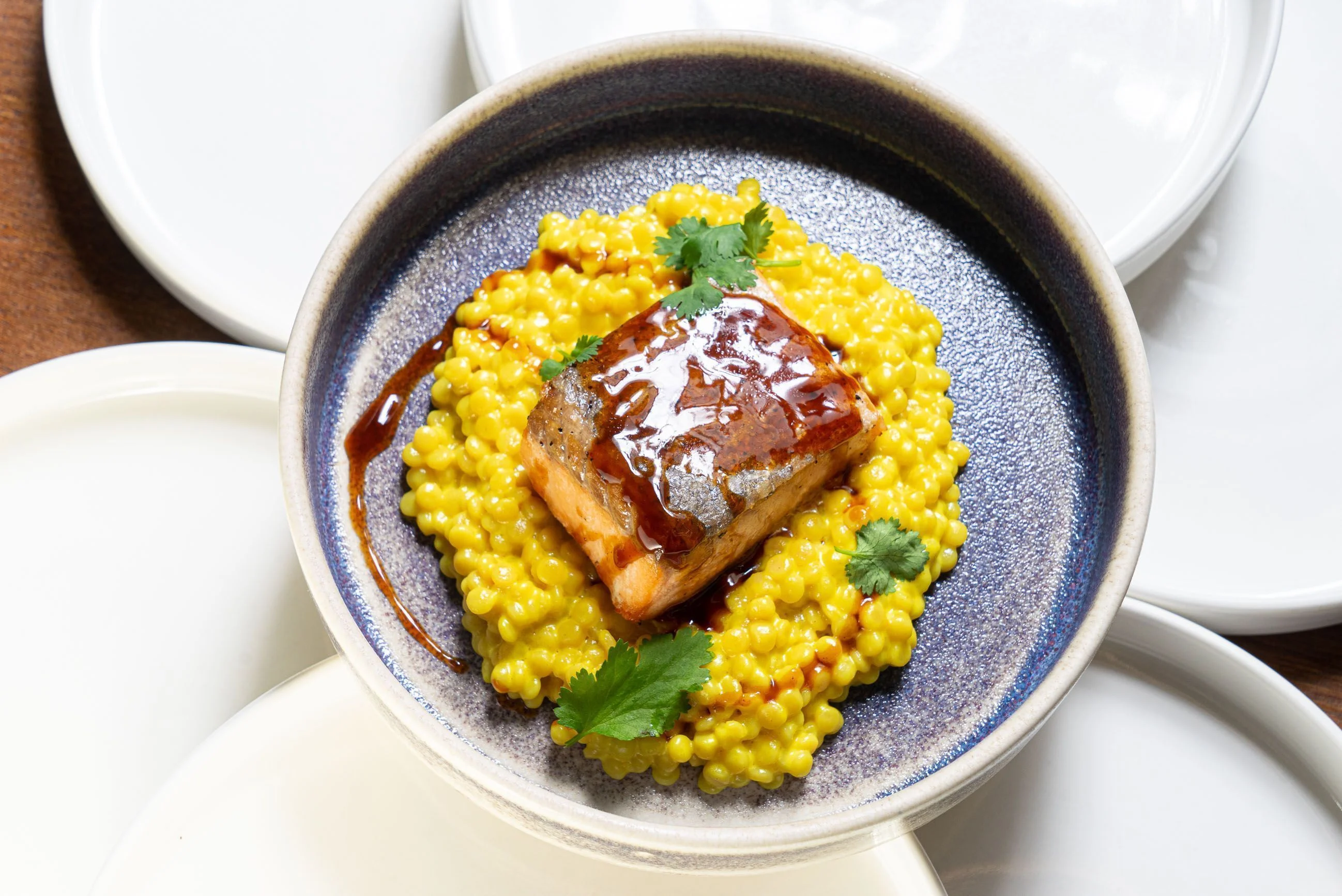 Ближе к вечеру на закуску берите салат с картофелем пай и курицей, салат с ростбифом, сладким перцем и соусом гамадари или домашний салат с говяжьим языком. Есть отдельное меню «Поке», и здесь надо попробовать поке-боул с креветками том ям или поке-боул с азиатским ростбифом. Из горячего возьмите томлёного барашка, паровые котлетки из индейки и курицы с сырным муссом, жареного лосося с пастой птитим, куркумой и сулгуни или плескавицу. На десерт рекомендую вафли с карамелизированным бананом и варёной сгущёнкой.